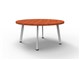 Eternity Round Coffee Table - Cherry / White Satin 900mm Dia x 450mm H 25mm T Cherry Table Top With Matching Rigid Edge 60mm x 30mm Splayed Leg Underframe In White Satin P/C E0 Enviroboard Melamine Table Top 2mm Steel Gauge To Leg Set Adjustable leveling Feet 5 Year Warranty
