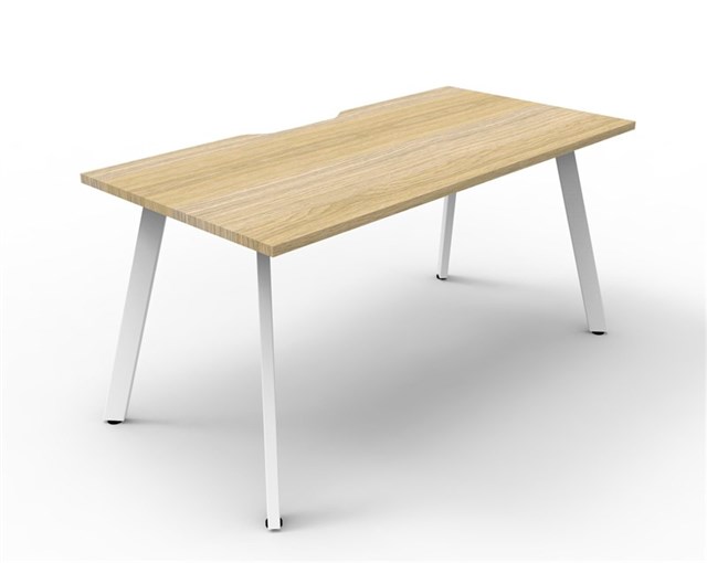 Eternity 1 Person Single Sided Workstation - No Screen Natural Oak Worksurface With 410mm W x 50mm D Scallop Cable Access 1800mm W x 750mm D x 730mm H ( Overall ) 1800mm W x 750mm D x 730mm H Per User 60mm x 30mm Splayed Leg Underframe In White P/C Dual Cross Bar For Added Stability E0 Enviroboard Melamine Worksurface Adjustable leveling Feet 5 Year Warranty AFRDI Certified