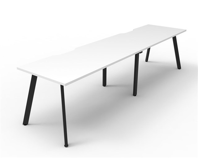 Eternity 2 Person Single Sided Workstation - No Screen Natural White Worksurface With 410mm W x 50mm D Scallop Cable Access 2400mm W x 750mm D x 730mm H ( Overall ) 1200mm W x 750mm D x 730mm H Per User 60mm x 30mm Splayed Leg UnderframeIn Black P/C Dual Cross Bar For Added Stability E0 Enviroboard Melamine Worksurface Adjustable leveling Feet 5 Year Warranty AFRDI Certified