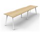 Eternity 2 Person Single Sided Workstation - No Screen Natural Oak Worksurface With 410mm W x 50mm D Scallop Cable Access 3000mm W x 750mm D x 730mm H ( Overall ) 1500mm W x 750mm D x 730mm H Per User 60mm x 30mm Splayed Leg Underframe In White P/C Dual Cross Bar For Added Stability E0 Enviroboard Melamine Worksurface Adjustable leveling Feet 5 Year Warranty AFRDI Certified