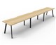 Eternity 3 Person Single Sided Workstation - No Screen Natural Oak Worksurface With 410mm W x 50mm D Scallop Cable Access 4500mm W x 750mm D x 730mm H ( Overall ) 1500mm W x 750mm D x 730mm H Per User 60mm x 30mm Splayed Leg Underframe In Black P/C Dual Cross Bar For Added Stability E0 Enviroboard Melamine Worksurface Adjustable leveling Feet 5 Year Warranty AFRDI Certified