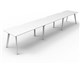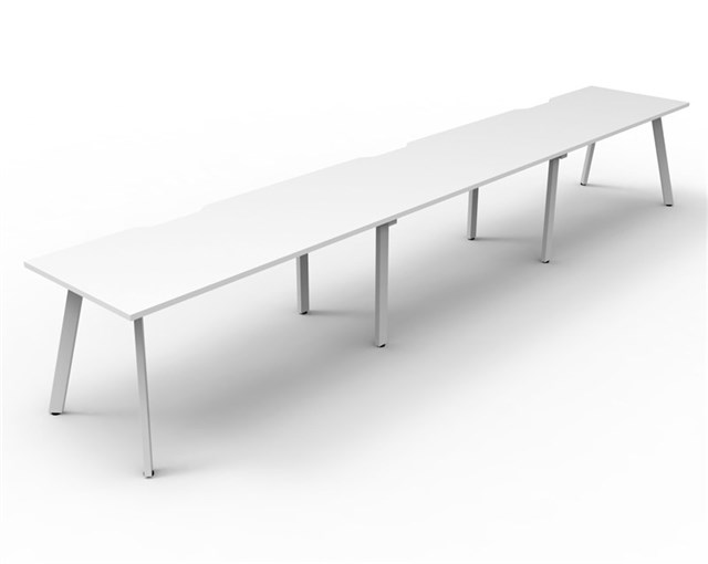 Eternity 3 Person Single Sided Workstation - No Screen Natural White Worksurface With 410mm W x 50mm D Scallop Cable Access 4500mm W x 750mm D x 730mm H ( Overall ) 1500mm W x 750mm D x 730mm H Per User 60mm x 30mm Splayed Leg Underframe In White P/C Dual Cross Bar For Added Stability E0 Enviroboard Melamine Worksurface Adjustable leveling Feet 5 Year Warranty AFRDI Certified