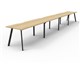 Eternity 4 Person Single Sided Workstation - No Screen Natural Oak Worksurface With 410mm W x 50mm D Scallop Cable Access 7200mm W x 750mm D x 730mm H ( Overall ) 1800mm W x 750mm D x 730mm H Per User 60mm x 30mm Splayed Leg Underframe In Black P/C Dual Cross Bar For Added Stability E0 Enviroboard Melamine Worksurface Adjustable leveling Feet 5 Year Warranty AFRDI Certified