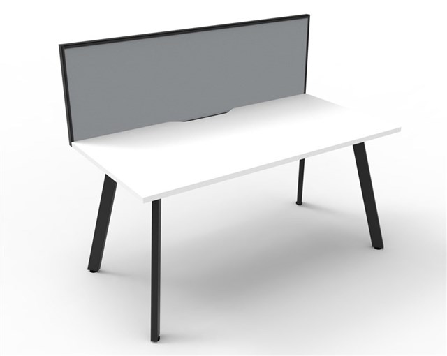 Eternity 1 Person Single Sided Workstation - With Screen Natural White Worksurface With 410mm W x 50mm D Scallop Cable Access 1800mm W x 780mm D x 730mm H ( Overall ) 1800mm W x 750mm D x 730mm H Per User 60mm x 30mm Splayed Leg Underframe In Black P/C 495mm H x 30mm T Pinnable Privacy Screen Upholstered In Grey Fabric With Matching Black P/C Extrusion Dual Cross Bar For Added Stability E0 Enviroboard Melamine Worksurface Adjustable leveling Feet 5 Year Warranty AFRDI Certified