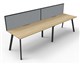 Eternity 2 Person Single Sided Workstation - With Screen Natural Oak Worksurface With 410mm W x 50mm D Scallop Cable Access 3600mm W x 780mm D x 730mm H ( Overall ) 1800mm W x 750mm D x 730mm H Per User 60mm x 30mm Splayed Leg Underframe In Black P/C 495mm H x 30mm T Pinnable Privacy Screen Upholstered In Grey Fabric With Matching Black P/C Extrusion Dual Cross Bar For Added Stability E0 Enviroboard Melamine Worksurface Adjustable leveling Feet 5 Year Warranty AFRDI Certified
