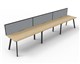 Eternity 3 Person Single Sided Workstation - With Screen Natural Oak Worksurface With 410mm W x 50mm D Scallop Cable Access 4500mm W x 780mm D x 730mm H ( Overall ) 1500mm W x 750mm D x 730mm H Per User 60mm x 30mm Splayed Leg Underframe In Black P/C 495mm H x 30mm T Pinnable Privacy Screen Upholstered In Grey Fabric With Matching Black P/C Extrusion Dual Cross Bar For Added Stability E0 Enviroboard Melamine Worksurface Adjustable leveling Feet 5 Year Warranty AFRDI Certified