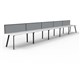Eternity 5 Person Single Sided Workstation - With Screen Natural White Worksurface With 410mm W x 50mm D Scallop Cable Access 6000mm W x 780mm D x 730mm H ( Overall ) 1200mm W x 750mm D x 730mm H Per User 60mm x 30mm Splayed Leg Underframe In White P/C 495mm H x 30mm T Pinnable Privacy Screen Upholstered In Black Fabric With Matching White P/C Extrusion Dual Cross Bar For Added Stability E0 Enviroboard Melamine Worksurface Adjustable leveling Feet 5 Year Warranty AFRDI Certified