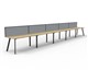 Eternity 5 Person Single Sided Workstation - With Screen Natural Oak Worksurface With 410mm W x 50mm D Scallop Cable Access 7500mm W x 780mm D x 730mm H ( Overall ) 1500mm W x 750mm D x 730mm H Per User 60mm x 30mm Splayed Leg UnderframeIn White P/C 495mm H x 30mm T Pinnable Privacy Screen Upholstered In Black Fabric With Matching White P/C Extrusion Dual Cross Bar For Added Stability E0 Enviroboard Melamine Worksurface Adjustable leveling Feet 5 Year Warranty AFRDI Certified
