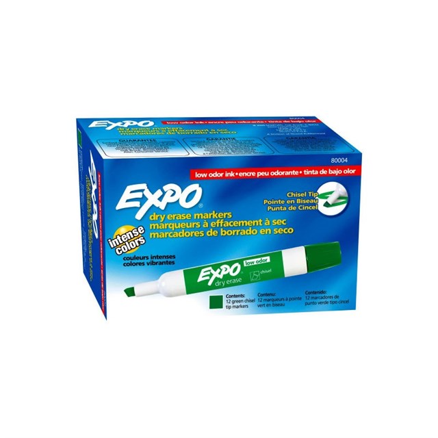 Expo Whiteboard Marker Bullet Tip Green Bx12 has specially formulated low odor ink is ideal for classrooms, small offices, and homes