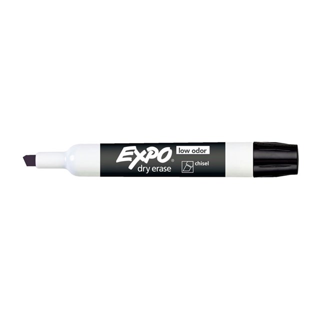Expo Whiteboard Marker Chisel Tip Black Bx12 has specially formulated low odor ink is ideal for classrooms, small offices, and homes