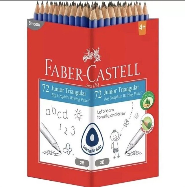 Faber-Castell Junior Triangular Graphite Pencils have a thick triangular design to help beginner writers adopt a comfortable, natural writing position