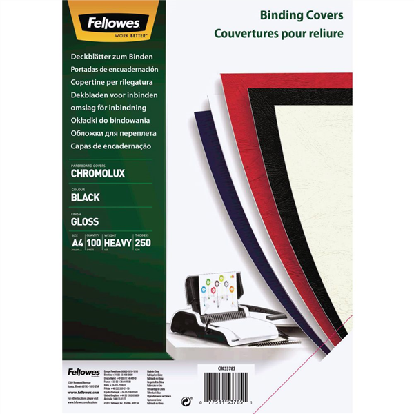 Fellowes Binding Covers Gloss A4 Black 100 Pack