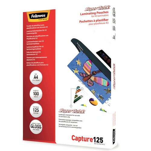 Fellowes Laminating Pouch A4 125 Micron Superquick 100 Pack Adelaide Direct Stationers