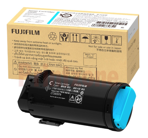 The Fujifilm CT203979 is an Original Equipment Manufacturer (OEM) Cyan toner cartridge designed for high-volume office use