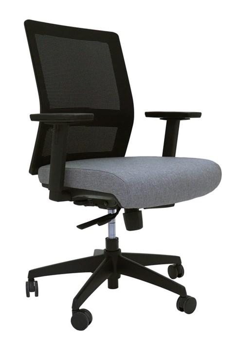 Gesture Task Chair - Black and Light Grey Fabric Medium Mesh Back Task Chair, Synchronised-Dynamic Mechanism with Seat Slider Synchronised Black Mesh Back Rest and Light Grey Seat Pan Tilt with Gas Lift Adjustable Lumbar Support 130kg Weight Rating BIFMA Tested Greenguard Approved Black 5 Star Base On Castors AFRDI Level 6 5 Year Warranty