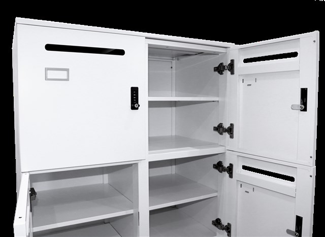 GO Office Locker Unit - White China ** ASSEMBLED ** 1375mm H x 800mm W x 486mm D 6 Lockable Individual Compartments with Mail / Document Slot and Adjustable Shelf Name Tag Holder Fitted To Each Door 4 Digit Combination Lock Fitted To Each Door With Both Private & Public Functions 1 x Master Key Provided With Each Unit Four Easy Adjust leveling Feet White China P/C 10 Year Warranty