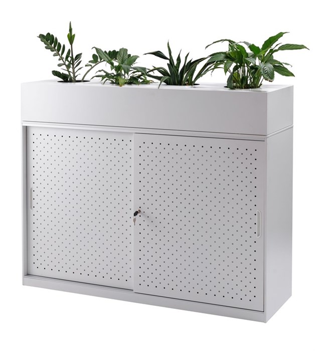 The Go Planter Box displays greenery on the GO Perforated Sliding Door Cupboard (PSDC1015)