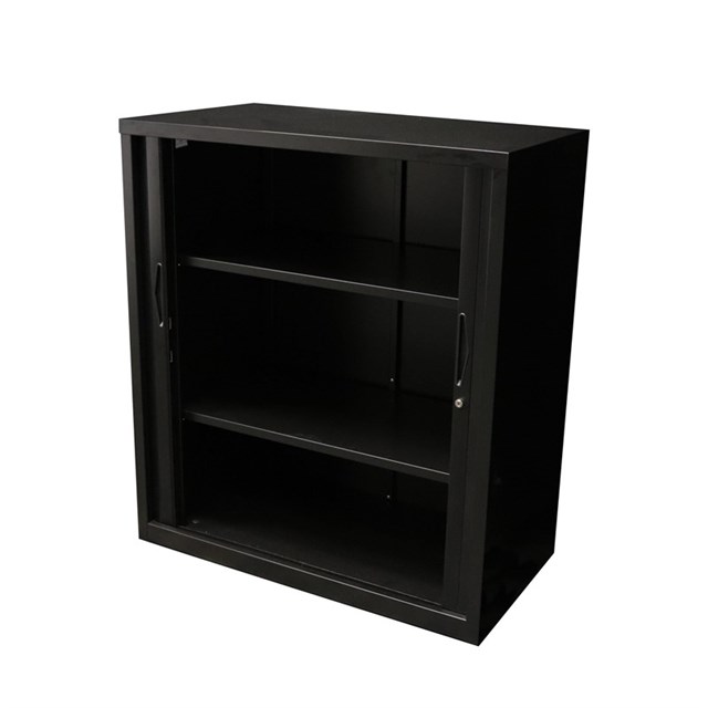 GO Tambour Door Unit with Shelves - 1200mm H - Black 1200mm H x 1200mm W x 473mm D Two Shelves Included Unit Supplied With 2 Keys Fully Riveted For Extra Strength Master Key Series Adjustable leveling Feet Magnetic Slam Rail 10 Year Warranty