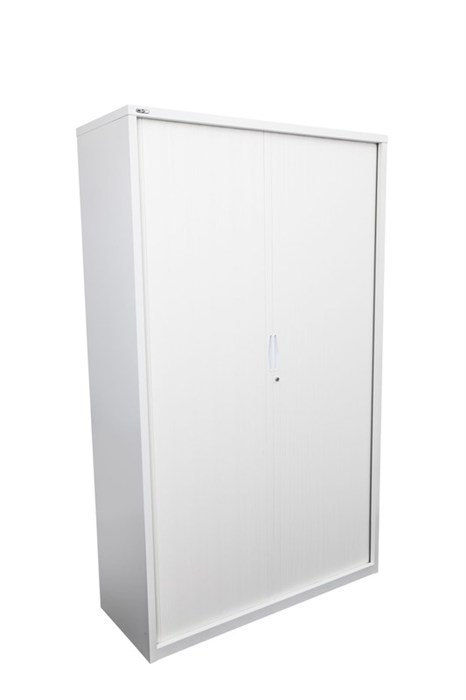 ** ASSEMBLED ** GO Tambour Door Unit - 1981mm H - White China 1981mm H x 1200mm W x 473mm D Shelves Not Included Unit Supplied With 2 Keys Fully Riveted For Extra Strength Master Key Series Adjustable Levelling Feet Magnetic Slam Rail 10 Year Warranty