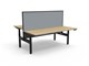 Halo Plus Back To Back Workstation With Screen - Natural Oak/ Black Satin 1200mm W x 1500mm D x 620mm - 1270mm H (Overall) 1200mm W x 750mm D x 620mm - 1270mm H (Per User) Overall Height AFFL including Screen: 1330mm H E0 Rated 25mm T Table Top Finished In Natural Oak With Rigid Edging & 50mm D Scallop Cut Out To Rear Round Leg Underframe Finished In Black Satin Powder Coat 1200mm W x 900mm H x 30mm T Pinnable Privacy Screen Finished In Grey Fabric With Matching Black P/C Extrusion Digital Control Panel With 3 Pre-Set Positions, LED Display Panel, Keypad Safety Lock & Reminder Alarm Setting Anti- Collision & Anti-Tilt Technology Column Size: 70mm Dia Height Range: 595mm-1245mm ( Without Table Top ) Lifting Capacity: 120 Kg Max Speed: 38mm Per Second Adjustable Leveling Feet Dual Motor Desk Mounting Top Plate Size: 500mm Steel Gauge: 3.0mm, 2.0mm & 1.5mm Used Throughout Noise Emission: <50DB Surge Immunity: 1kV(L1 to L2) / 2kV(L1,L2 To PE) ESD Protection: +-4.0kV ( Contact Discharge )/+-8.0kV ( Air Discharge ) Input Power: 110-240V Transformer Power:128W (.03W On Standby ) SAA and C Tick Certification Additional Items Also Available Include: Fully Ducted Cable Tray Complete With Power & Data Punchouts Internal & External To Tray ( B2-B2BCT12 ) Bluetooth Control Box ( B2-BTCB ) Cable Tray Bridge ( B2-B2BBR ) Flexible Cable Snake ( B2-CBSNAKE ) Battery Pack ( B2-BATT ) 10 Year Warranty