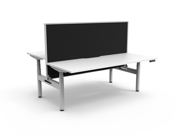 Halo Plus Back To Back Workstation With Screen - Natural White/ White Satin 1200mm W x 1500mm D x 620mm - 1270mm H (Overall) 1200mm W x 750mm D x 620mm - 1270mm H (Per User) Overall Height AFFL including Screen: 1330mm H E0 Rated 25mm T Table Top Finished In Natural White With Rigid Edging & 50mm D Scallop Cut Out To Rear Round Leg Underframe Finished In White Satin Powder Coat 1200mm W x 900mm H x 30mm T Pinnable Privacy Screen Finished In Black Fabric With Matching White P/C Extrusion Digital Control Panel With 3 Pre-Set Positions, LED Display Panel, Keypad Safety Lock & Reminder Alarm Setting Anti- Collision & Anti-Tilt Technology Column Size: 70mm Dia Height Range: 595mm-1245mm ( Without Table Top ) Lifting Capacity: 120 Kg Max Speed: 38mm Per Second Adjustable Leveling Feet Dual Motor Desk Mounting Top Plate Size: 500mm Steel Gauge: 3.0mm, 2.0mm & 1.5mm Used Throughout Noise Emission: <50DB Surge Immunity: 1kV(L1 to L2) / 2kV(L1,L2 To PE) ESD Protection: +-4.0kV ( Contact Discharge )/+-8.0kV ( Air Discharge ) Input Power: 110-240V Transformer Power:128W (.03W On Standby ) SAA and C Tick Certification Additional Items Also Available Include: Fully Ducted Cable Tray Complete With Power & Data Punchouts Internal & External To Tray ( B2-B2BCT12 ) Bluetooth Control Box ( B2-BTCB ) Cable Tray Bridge ( B2-B2BBR ) Flexible Cable Snake ( B2-CBSNAKE ) Battery Pack ( B2-BATT ) 10 Year Warranty