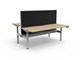 Halo Plus Back To Back Workstation With Screen - Natural Oak/ White Satin 1800mm W x 1500mm D x 620mm - 1270mm H (Overall) 1800mm W x 750mm D x 620mm - 1270mm H (Per User) Overall Height AFFL including Screen: 1330mm H E0 Rated 25mm T Table Top Finished In Natural Oak With Rigid Edging & 50mm D Scallop Cut Out To Rear Round Leg Underframe Finished In White Satin Powder Coat Fully Ducted Cable Tray With Punchout For Power & Data To be Fitted To Either External Or Internal Of Frame 1800mm W x 900mm H x 30mm T Pinnable Privacy Screen Finished In Black Fabric With Matching White P/C Extrusion Digital Control Panel With 3 Pre-Set Positions, LED Display Panel, Keypad Safety Lock & Reminder Alarm Setting Anti- Collision & Anti-Tilt Technology Column Size: 70mm Dia Height Range: 595mm-1245mm ( Without Table Top ) Lifting Capacity: 120 Kg Max Speed: 38mm Per Second Adjustable Leveling Feet Dual Motor Desk Mounting Top Plate Size: 500mm Steel Gauge: 3.0mm, 2.0mm & 1.5mm Used Throughout Noise Emission: <50DB Surge Immunity: 1kV(L1 to L2) / 2kV(L1,L2 To PE) ESD Protection: +-4.0kV ( Contact Discharge )/+-8.0kV ( Air Discharge ) Input Power: 110-240V Transformer Power:128W (.03W On Standby ) SAA and C Tick Certification Additional Items Also Available Include: Bluetooth Control Box ( B2-BTCB ) Cable Tray Bridge ( B2-B2BBR ) Flexible Cable Snake ( B2-CBSNAKE ) Battery Pack ( B2-BATT ) 10 Year Warranty