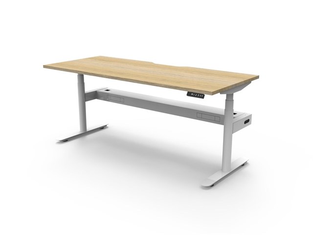 Halo Plus Single Sided Workstation With Cable Tray - Natural Oak/ White Satin 1200mm W x 750mm D x 620mm - 1270mm H E0 Rated 25mm T Table Top Finished In Natural Oak With Rigid Edging & 50mm D Scallop Cut Out To Rear Round Leg Underframe Finished In White Satin Powder Coat Fully Ducted Cable Tray With Punchout For Power & Data To be Fitted To Either External Or Internal Of Frame Digital Control Panel With 3 Pre-Set Positions, LED Display Panel, Keypad Safety Lock & Reminder Alarm Setting Anti- Collision & Anti-Tilt Technology Column Size: 70mm Dia Height Range: 595mm-1245mm ( Without Table Top ) Lifting Capacity: 120 Kg Max Speed: 38mm Per Second Adjustable Leveling Feet Dual Motor Foot Size: 700mm Desk Mounting Top Plate Size: 500mm Steel Gauge: 3.0mm, 2.0mm & 1.5mm Used Throughout Noise Emission: <50DB Surge Immunity: 1kV(L1 to L2) / 2kV(L1,L2 To PE) ESD Protection: +-4.0kV ( Contact Discharge )/+-8.0kV ( Air Discharge ) Input Power: 110-240V Transformer Power:128W (.03W On Standby ) SAA and C Tick Certification Additional Items Also Available Include: 30mm T Pinnable Privacy Screen ( SHS129 + HP-SSARM + B2-SBRAC ) Bluetooth Control Box ( B2-BTCB ) Cable Tray Bridge ( B2-SSBR ) Flexible Cable Snake ( B2-CBSNAKE ) Battery Pack ( B2-BATT ) 10 Year Warranty