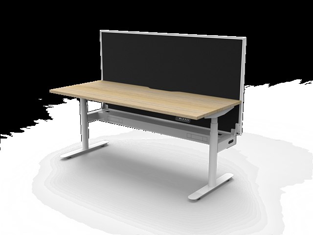 Halo Plus Single Sided Workstation With Screen - Natural Oak/ White Satin 1200mm W x 750mm D x 620mm - 1270mm H Overall Height AFFL including Screen: 1330mm H E0 Rated 25mm T Table Top Finished In Natural Oak With Rigid Edging & 50mm D Scallop Cut Out To Rear Round Leg Underframe Finished In White Satin Powder Coat Fully Ducted Cable Tray With Punchout For Power & Data To be Fitted To Either External Or Internal Of Frame 1200mm W x 900mm H x 30mm T Pinnable Privacy Screen Finished In Black Fabric With Matching White P/C Extrusion Digital Control Panel With 3 Pre-Set Positions, LED Display Panel, Keypad Safety Lock & Reminder Alarm Setting Anti- Collision & Anti-Tilt Technology Column Size: 70mm Dia Height Range: 595mm-1245mm ( Without Table Top ) Lifting Capacity: 120 Kg Max Speed: 38mm Per Second Adjustable Leveling Feet Dual Motor Foot Size: 700mm Desk Mounting Top Plate Size: 500mm Steel Gauge: 3.0mm, 2.0mm & 1.5mm Used Throughout Noise Emission: <50DB Surge Immunity: 1kV(L1 to L2) / 2kV(L1,L2 To PE) ESD Protection: +-4.0kV ( Contact Discharge )/+-8.0kV ( Air Discharge ) Input Power: 110-240V Transformer Power:128W (.03W On Standby ) SAA and C Tick Certification Additional Items Also Available Include: Bluetooth Control Box ( B2-BTCB ) Cable Tray Bridge ( B2-SSBR ) Flexible Cable Snake ( B2-CBSNAKE ) Battery Pack ( B2-BATT ) 10 Year Warranty