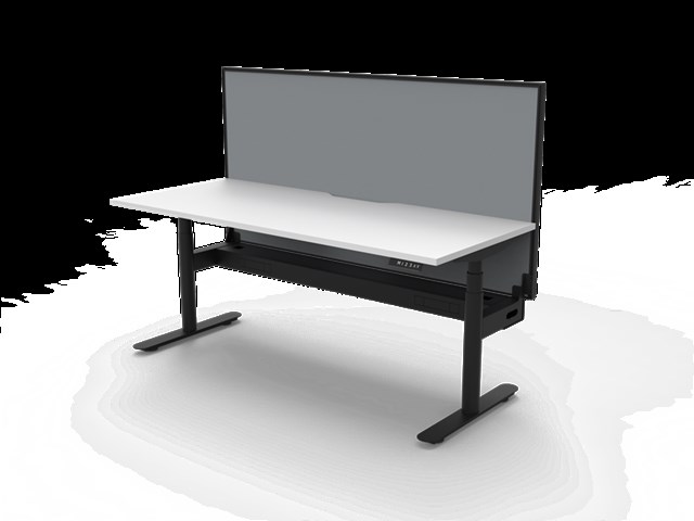 Halo Plus Single Sided Workstation With Screen - Natural White/ Black Satin 1800mm W x 750mm D x 620mm - 1270mm H Overall Height AFFL including Screen: 1330mm H E0 Rated 25mm T Table Top Finished In Natural White With Rigid Edging & 50mm D Scallop Cut Out To Rear Round Leg Underframe Finished In Black Satin Powder Coat Fully Ducted Cable Tray With Punchout For Power & Data To be Fitted To Either External Or Internal Of Frame 1800mm W x 900mm H x 30mm T Pinnable Privacy Screen Finished In Grey Fabric With Matching Black P/C Extrusion Digital Control Panel With 3 Pre-Set Positions, LED Display Panel, Keypad Safety Lock & Reminder Alarm Setting Anti- Collision & Anti-Tilt Technology Column Size: 70mm Dia Height Range: 595mm-1245mm ( Without Table Top ) Lifting Capacity: 120 Kg Max Speed: 38mm Per Second Adjustable Leveling Feet Dual Motor Foot Size: 700mm Desk Mounting Top Plate Size: 500mm Steel Gauge: 3.0mm, 2.0mm & 1.5mm Used Throughout Noise Emission: <50DB Surge Immunity: 1kV(L1 to L2) / 2kV(L1,L2 To PE) ESD Protection: +-4.0kV ( Contact Discharge )/+-8.0kV ( Air Discharge ) Input Power: 110-240V Transformer Power:128W (.03W On Standby ) SAA and C Tick Certification Additional Items Also Available Include: Bluetooth Control Box ( B2-BTCB ) Cable Tray Bridge ( B2-SSBR ) Flexible Cable Snake ( B2-CBSNAKE ) Battery Pack ( B2-BATT ) 10 Year Warranty