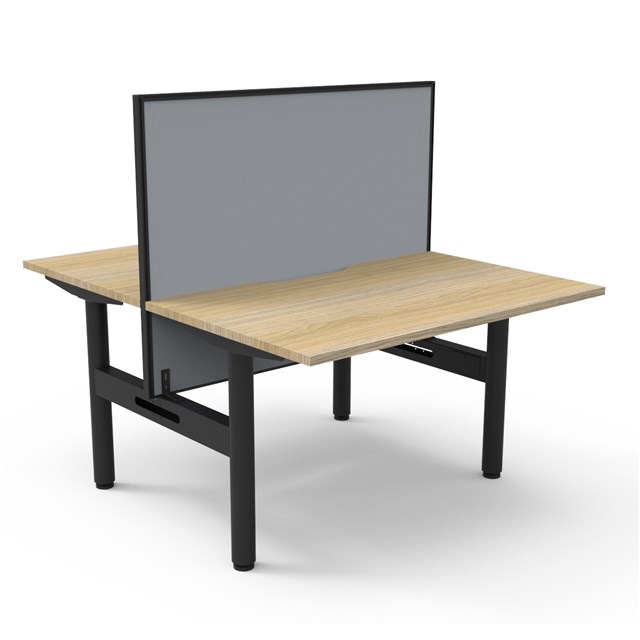 Halo Static Back To Back Workstation With Screen - Natural Oak/ Black Satin 1200mm W x 1500mm D x 730mm H (Overall) 1200mm W x 750mm D x 730mm H (Per User) Overall Height AFFL including Screen: 1330mm H E0 Rated 25mm T Table Top Finished In Natural Oak With Rigid Edging & 50mm D Scallop Cut Out To Rear Underframe Finished In Black Satin Powder Coat 1200mm W x 900mm H x 30mm T Pinnable Privacy Screen Finished In Grey Fabric With Matching Black P/C Extrusion Column Size: 70mm Dia Frame Height: 705mm ( Without Table Top ) Adjustable Levelling Feet Desk Mounting Top Plate Size: 500mm Steel Gauge: 3.0mm, 2.0mm & 1.5mm Used Throughout Additional Items Also Available Include: Fully Ducted Cable Tray Complete With Power & Data Punchouts Internal & External To Tray ( B2-B2BCT12 ) Cable Tray Bridge ( B2-B2BBR ) Flexible Cable Snake ( BH-HDSNAKE ) 10 Year Warranty