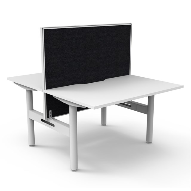 Halo Static Back To Back Workstation With Screen - Natural White/ White Satin 1200mm W x 1500mm D x 730mm H (Overall) 1200mm W x 750mm D x 730mm H (Per User) Overall Height AFFL including Screen: 1330mm H E0 Rated 25mm T Table Top Finished In Natural White With Rigid Edging & 50mm D Scallop Cut Out To Rear Underframe Finished In White Satin Powder Coat 1200mm W x 900mm H x 30mm T Pinnable Privacy Screen Finished In Black Fabric With Matching White P/C Extrusion Column Size: 70mm Dia Frame Height: 705mm ( Without Table Top ) Adjustable Levelling Feet Desk Mounting Top Plate Size: 500mm Steel Gauge: 3.0mm, 2.0mm & 1.5mm Used Throughout Additional Items Also Available Include: Fully Ducted Cable Tray Complete With Power & Data Punchouts Internal & External To Tray ( B2-B2BCT12 ) Cable Tray Bridge ( B2-B2BBR ) Flexible Cable Snake ( BH-HDSNAKE ) 10 Year Warranty