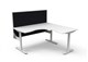 Halo Static Corner Workstation - Natural White/ White Satin 1500mm W x 1500mm W x 750mm D x 730mm H E0 Rated 25mm T Table Top Finished In Natural White With Rigid Edging & 80mm Dia Cable Entry With Cover Underframe Finished In White Satin Powder Coat 1500mm W x 900mm H x 30mm T Pinnable Privacy Screen Finished In Black Fabric With Matching White P/C Extrusion Column Size: 70mm Dia Frame Height: 705mm ( Without Table Top ) Adjustable Levelling Feet Foot Size: 700mm Of Main Desk + 500mm For Return Frame Desk Mounting Top Plate Size: 500mm Steel Gauge: 3.0mm, 2.0mm & 1.5mm Used Throughout Additional Items Also Available Include: Fully Ducted Cable Tray Complete With Power & Data Punchouts Internal & External To Tray ( B2-SSCT15 ) Cable Tray Bridge ( B2-SSBR ) Flexible Cable Snake ( BH-HDSNAKE ) 10 Year Warranty