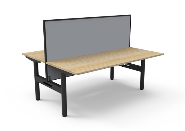 Halo Static Back To Back Workstation With Screen - Natural Oak/ White Satin 1800mm W x 1500mm D x 730mm H (Overall) 1800mm W x 750mm D x 730mm H (Per User) Overall Height AFFL including Screen: 1330mm H E0 Rated 25mm T Table Top Finished In Natural Oak With Rigid Edging & 50mm D Scallop Cut Out To Rear Underframe Finished In White Satin Powder Coat 1800mm W x 900mm H x 30mm T Pinnable Privacy Screen Finished In Black Fabric With Matching White P/C Extrusion Column Size: 70mm Dia Frame Height: 705mm ( Without Table Top ) Adjustable Levelling Feet Desk Mounting Top Plate Size: 500mm Steel Gauge: 3.0mm, 2.0mm & 1.5mm Used Throughout Additional Items Also Available Include: Fully Ducted Cable Tray Complete With Power & Data Punchouts Internal & External To Tray ( B2-B2BCT18 ) Cable Tray Bridge ( B2-B2BBR ) Flexible Cable Snake ( BH-HDSNAKE ) 10 Year Warranty