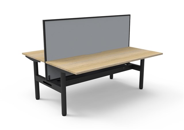 Halo Static Back To Back Workstation With Screen and Cable Tray - Natural Oak/ Black Satin 1800mm W x 1500mm D x 730mm H (Overall) 1800mm W x 750mm D x 730mm H (Per User) Overall Height AFFL including Screen: 1330mm H E0 Rated 25mm T Table Top Finished In Natural Oak With Rigid Edging & 50mm D Scallop Cut Out To Rear Underframe Finished In Black Satin Powder Coat Fully Ducted Cable Tray With Punchout For Power & Data To be Fitted To Either External Or Internal Of Frame 1800mm W x 900mm H x 30mm T Pinnable Privacy Screen Finished In Grey Fabric With Matching Black P/C Extrusion Column Size: 70mm Dia Frame Height: 705mm ( Without Table Top ) Adjustable Levelling Feet Desk Mounting Top Plate Size: 500mm Steel Gauge: 3.0mm, 2.0mm & 1.5mm Used Throughout Additional Items Also Available Include: Cable Tray Bridge ( B2-B2BBR ) Flexible Cable Snake ( BH-HDSNAKE ) 10 Year Warranty