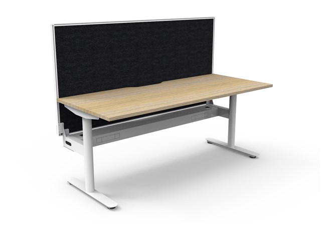 Halo Static Single Sided Workstation With Screen and Cable Tray - Natural Oak/ White Satin 1800mm W x 750mm D x 730mm H Overall Height AFFL including Screen: 1330mm H E0 Rated 25mm T Table Top Finished In Natural Oak With Rigid Edging & 50mm D Scallop Cut Out To Rear Underframe Finished In White Satin Powder Coat Fully Ducted Cable Tray With Punchout For Power & Data To be Fitted To Either External Or Internal Of Frame 1800mm W x 900mm H x 30mm T Pinnable Privacy Screen Finished In Black Fabric With Matching White P/C Extrusion Column Size: 70mm Dia Frame Height: 705mm ( Without Table Top ) Adjustable Levelling Feet Foot Size: 700mm Desk Mounting Top Plate Size: 500mm Steel Gauge: 3.0mm, 2.0mm & 1.5mm Used Throughout Additional Items Also Available Include: Cable Tray Bridge ( B2-SSBR ) Flexible Cable Snake ( BH-HDSNAKE ) 10 Year Warranty