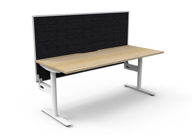 Halo Static Single Sided Workstation With Screen - Natural Oak/ White Satin 1800mm W x 750mm D x 730mm H Overall Height AFFL including Screen: 1330mm H E0 Rated 25mm T Table Top Finished In Natural Oak With Rigid Edging & 50mm D Scallop Cut Out To Rear Underframe Finished In White Satin Powder Coat 1800mm W x 900mm H x 30mm T Pinnable Privacy Screen Finished In Black Fabric With Matching White P/C Extrusion Column Size: 70mm Dia Frame Height: 705mm ( Without Table Top ) Adjustable Levelling Feet Foot Size: 700mm Desk Mounting Top Plate Size: 500mm Steel Gauge: 3.0mm, 2.0mm & 1.5mm Used Throughout Additional Items Also Available Include: Fully Ducted Cable Tray Complete With Power & Data Punchouts Internal & External To Tray ( B2-SSCT18 ) Cable Tray Bridge ( B2-SSBR ) Flexible Cable Snake ( BH-HDSNAKE ) 10 Year Warranty