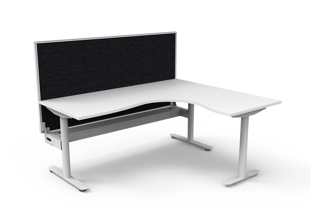 Halo Static Corner Workstation - Natural White/ White Satin 1800mm W x 1500mm W x 750mm D x 730mm H E0 Rated 25mm T Table Top Finished In Natural White With Rigid Edging & 80mm Dia Cable Entry With Cover Underframe Finished In White Satin Powder Coat Fully Ducted Cable Tray With Punchout For Power & Data To be Fitted To Either External Or Internal Of Frame 1800mm W x 900mm H x 30mm T Pinnable Privacy Screen Finished In Black Fabric With Matching White P/C Extrusion Column Size: 70mm Dia Frame Height: 705mm ( Without Table Top ) Adjustable Levelling Feet Foot Size: 700mm Of Main Desk + 500mm For Return Frame Desk Mounting Top Plate Size: 500mm Steel Gauge: 3.0mm, 2.0mm & 1.5mm Used Throughout Additional Items Also Available Include: Cable Tray Bridge ( B2-SSBR ) Flexible Cable Snake ( BH-HDSNAKE ) 10 Year Warranty