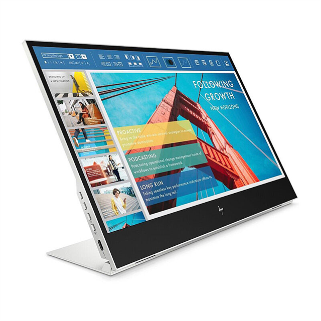 The HP 14'' Portable Monitor offers a compact and lightweight solution for extending your screen workspace