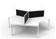 Deluxe Infinity 3 Person 120 Degree Workstation - With Screen Natural White Worksurface With 1 x 80mm Dia Cable Entry Hole 2866mm W x X 2480mm D x 1200mm H ( Overall ) 1205mm W x 1205mm D x 730mm H Per User 60mm x 30mm Profile Leg Underframe In White P/C 495mm H x 30mm T Pinnable Privacy Screen Upholstered In Black Fabric With Matching White P/C Extrusion 30mm Cable Access Void In Between Double Sided Users - Infill Rail Avail