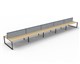 Deluxe Rapid Infinity 10 Person Double Sided Workstation - With Screen Natural Oak Worksurface With 410mm W x 50mm D Scallop Cable Access 7500mm W x 1530mm D x 1200mm H ( Overall ) 1500mm W x 750mm D x 730mm H Per User 60mm x 45mm Beveled Edge Loop Leg Underframe In Black P/C 495mm H x 30mm T Pinnable Privacy Screen Upholstered In Grey Fabric With Matching Black P/C Extrusion Dual Cross Bar For Added Stability E0 Enviroboard Melamine Worksurface Adjustable leveling Feet 5 Year Warranty AFRDI Certified