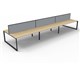 Deluxe Rapid Infinity 6 Person Double Sided Workstation - With Screen Natural Oak Worksurface With 410mm W x 50mm D Scallop Cable Access 3600mm W x 1530mm D x 1200mm H ( Overall ) 1200mm W x 750mm D x 730mm H Per User 60mm x 45mm Beveled Edge Loop Leg Underframe In Black P/C 495mm H x 30mm T Pinnable Privacy Screen Upholstered In Grey Fabric With Matching Black P/C Extrusion Dual Cross Bar For Added Stability E0 Enviroboard Melamine Worksurface Adjustable leveling Feet 5 Year Warranty AFRDI Certified