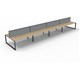Deluxe Rapid Infinity 8 Person Double Sided Workstation - With Screen Natural Oak Worksurface With 410mm W x 50mm D Scallop Cable Access 7200mm W x 1530mm D x 1200mm H ( Overall ) 1800mm W x 750mm D x 730mm H Per User 60mm x 45mm Beveled Edge Loop Leg Underframe In Black P/C 495mm H x 30mm T Pinnable Privacy Screen Upholstered In Grey Fabric With Matching Black P/C Extrusion Dual Cross Bar For Added Stability E0 Enviroboard Melamine Worksurface Adjustable leveling Feet 5 Year Warranty AFRDI Certified