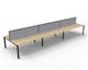 Deluxe Rapid Infinity 6 Person Double Sided Workstation - With Screen Natural Oak Worksurface With 410mm W x 50mm D Scallop Cable Access 3600mm W x 1530mm D x 1200mm H ( Overall ) 1200mm W x 750mm D x 730mm H Per User 60mm x 30mm Profile Leg Underframe In Black P/C 495mm H x 30mm T Pinnable Privacy Screen Upholstered In Grey Fabric With Matching Black P/C Extrusion Dual Cross Bar For Added Stability E0 Enviroboard Melamine Worksurface Adjustable leveling Feet 5 Year Warranty AFRDI Certified