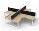Deluxe Rapid Infinity 4 Person Corner Workstation POD With Screens Natural Oak Worksurface With 80mm Dia Cable Entry hole 3030mm W x 3030mm D x 1200mm H ( Overall ) 1500mm x 1500mm x 730mm H Per User 60mm x 45mm Beveled Edge Loop Leg Underframe In White P/C 495mm H x 30mm T Pinnable Privacy Screen Upholstered In Black Fabric With Matching White P/C Extrusion Dual Cross Bar For Added Stability E0 Enviroboard Melamine Worksurface Adjustable leveling Feet 5 Year Warranty AFRDI Certified