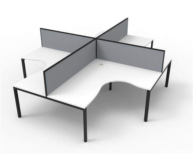Deluxe Rapid Infinity 4 Person Corner Workstation POD With Screens Natural White Worksurface With 80mm Dia Cable Entry hole 3630mm W x 3030mm D x 1200mm H ( Overall ) 1800mm x 1500mm x 750mm D x 730mm H Per User 60mm x 30mm Profile Leg Underframe In Black P/C 495mm H x 30mm T Pinnable Privacy Screen Upholstered In Grey Fabric With Matching Black P/C Extrusion 1 Piece Table Top Dual Cross Bar For Added Stability E0 Enviroboard Melamine Worksurface Adjustable leveling Feet 5 Year Warranty AFRDI Certified