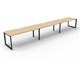 Deluxe Rapid Infinity 3 Person Single Sided Workstation - No Screen Natural Oak Worksurface With 410mm W x 50mm D Scallop Cable Access 3600mm W x 750mm D x 730mm H ( Overall ) 1200mm W x 750mm D x 730mm H Per User 60mm x 45mm Beveled Edge Loop Leg Underframe In Black P/C Dual Cross Bar For Added Stability E0 Enviroboard Melamine Worksurface Adjustable leveling Feet 5 Year Warranty AFRDI Certified