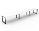 Deluxe Rapid Infinity 3 Person Single Sided Workstation - No Screen Natural White Worksurface With 410mm W x 50mm D Scallop Cable Access 5400mm W x 750mm D x 730mm H ( Overall ) 1800mm W x 750mm D x 730mm H Per User 60mm x 45mm Beveled Edge Loop Leg Underframe In Black P/C Dual Cross Bar For Added Stability E0 Enviroboard Melamine Worksurface Adjustable leveling Feet 5 Year Warranty AFRDI Certified