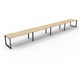 Deluxe Rapid Infinity 4 Person Single Sided Workstation - No Screen Natural Oak Worksurface With 410mm W x 50mm D Scallop Cable Access 4800mm W x 750mm D x 730mm H ( Overall ) 1200mm W x 750mm D x 730mm H Per User 60mm x 45mm Beveled Edge Loop Leg Underframe In Black P/C Dual Cross Bar For Added Stability E0 Enviroboard Melamine Worksurface Adjustable leveling Feet 5 Year Warranty AFRDI Certified