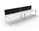 Deluxe Rapid Infinity 2 Person Single Sided Workstation - With Screen Natural White Worksurface With 410mm W x 50mm D Scallop Cable Access 2400mm W x 780mm D x 730mm H ( Overall ) 1200mm W x 750mm D x 730mm H Per User 60mm x 45mm Beveled Edge Loop Leg Underframe In White P/C 495mm H x 30mm T Pinnable Privacy Screen Upholstered In Black Fabric With Matching White P/C Extrusion Dual Cross Bar For Added Stability E0 Enviroboard Melamine Worksurface Adjustable leveling Feet 5 Year Warranty AFRDI Certified