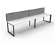 Deluxe Rapid Infinity 2 Person Single Sided Workstation - With Screen Natural White Worksurface With 410mm W x 50mm D Scallop Cable Access 3000mm W x 780mm D x 730mm H ( Overall ) 1500mm W x 750mm D x 730mm H Per User 60mm x 45mm Beveled Edge Loop Leg Underframe In Black P/C 495mm H x 30mm T Pinnable Privacy Screen Upholstered In Grey Fabric With Matching Black P/C Extrusion Dual Cross Bar For Added Stability E0 Enviroboard Melamine Worksurface Adjustable leveling Feet 5 Year Warranty AFRDI Certified